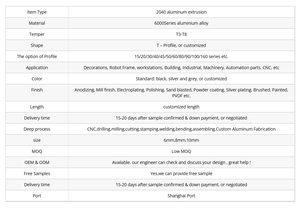2040 Aluminum Extrusion