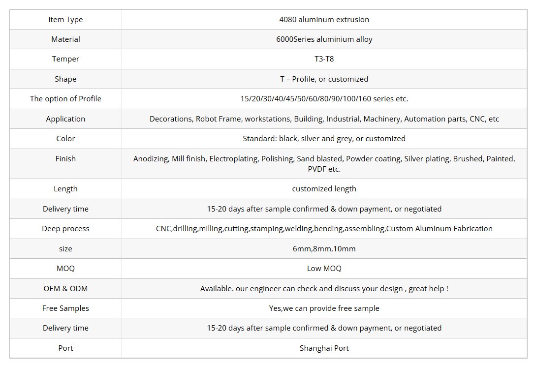 Once your 4080 aluminum extrusion design and prototype get the green light, you can expect your order to arrive in as little as 15 to 20 days.
